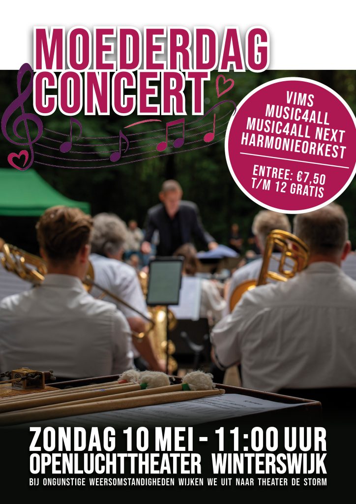Op zondag 10 mei vindt een bijzonder muzikaal moment plaats in Winterswijk. Om 11.00 uur verzorgt de gehele afdeling harmonie van de Koninklijke Winterswijkse Orkestvereniging (KWOV) een feestelijk Moederdagconcert in het Openluchttheater in de Huininkmaat. Het concert is meteen de heropening van het volledig gerenoveerde openluchttheater, dat hiermee voor het eerst weer in gebruik wordt genomen.Het Moederdagconcert biedt een gevarieerd programma voor jong en oud en vormt een laagdrempelige kennismaking met muziek in de buitenlucht. De entree bedraagt € 7,50; kinderen tot en met 12 jaar hebben gratis toegang, waardoor het concert een ideaal uitje is voor het hele gezin.Bij slecht weer wordt het concert verplaatst naar Boogie Woogie. Eventuele wijzigingen worden vooraf bekendgemaakt via de website www.kwov.nl en de sociale media van de KWOV.Eerste podium voor Music4AllOp het podium staan diverse orkesten en opleidingsgroepen van de KWOV. Music4All, onder leiding van Josien Legters, bestaat uit enthousiaste muzikanten die eind februari voor het eerst een instrument hebben aangeraakt. In slechts tien weken tijd hebben zij samen leren spelen en laten zij nu hun vorderingen horen met herkenbare en vrolijke muziek, zoals We will rock you, en samen met Musci4All NEXT spelen zij Muziek is cool en Six Seven.Aansluitend speelt Music4All Next, eveneens onder leiding van Josien Legters. Deze groep bestaat uit muzikanten die een eerdere Music4All-cursus hebben gevolgd en inmiddels muziekles volgen bij Boogie Woogie. Zij brengen onder andere ‘Baby Shark – Jaws’ en ‘Jungle Book’. Ook de VIM’s, onder leiding van Emile Laarveld, verzorgen een energiek optreden met een breed repertoire. Het publiek kan genieten van muziek uit bekende films en uit de popmuziek, waaronder muziek uit ‘Wicked’ en ‘The Lion King’ en bekende nummers van ABBA.Soliste op bugelHet concert wordt afgesloten door de harmonie van de KWOV onder leiding van Christian Ansink. Zij brengen een afwisselend ‘spaanstalig’ harmonieprogramma met een paso doble om in de stemming te komen. Met daarna El Camino Real, Suite from Maria de Buenos Aires en Malaguena. Bij ‘Children of Sanchez’ is de solistenrol weggelegd voor Femke Westerveld op bugel. Met als verrassing nog een feestelijke toegift kan iedereen geheel vrolijk deze Moederdag vervolgen.Muzikale gezinsochtendMet dit Moederdagconcert nodigt de KWOV iedereen uit om te komen luisteren en te genieten van live muziek op een mooie en vernieuwde plek. Of je nu komt voor de eerste klanken van beginnende muzikanten of voor het vertrouwde geluid van de harmonie: het belooft een gezellige muzikale ochtend te worden voor het hele gezin.