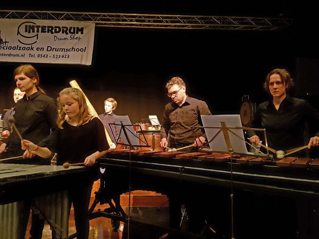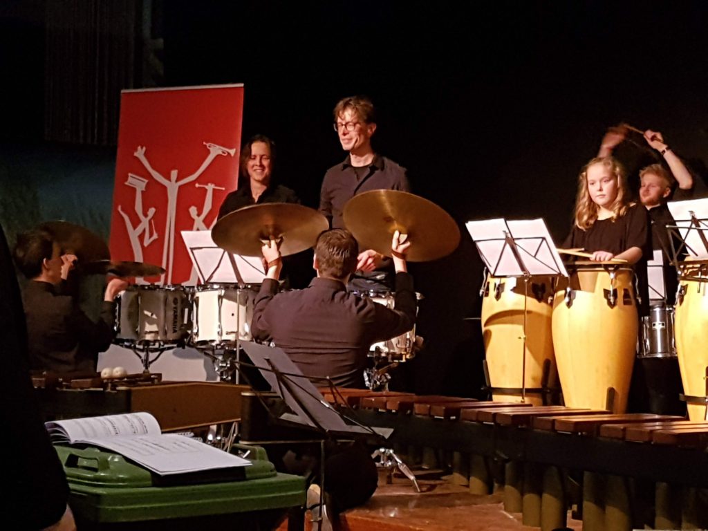 Naast de slagwerkers deden Frank en Bob mee op euphonium in het speciaal voor de slagwerkgroep gearrangeerde deel uit Windows of the World ‘Rainforest’.